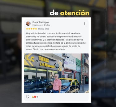 Las palabras que más nos representan son las de nuestros clientes ⭐⭐⭐⭐⭐ Cada reseña es el reflejo del compromiso, la transparencia y el acompañamiento que brindamos en cada venta. Gracias a quienes ya confiaron en Taxis Los Hermanos y se tomaron el tiempo de dejar su experiencia 💬