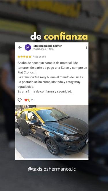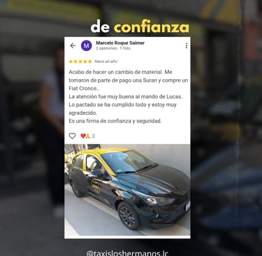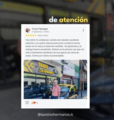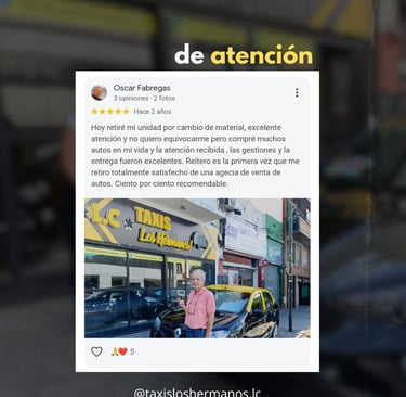 Las palabras que más nos representan son las de nuestros clientes ⭐⭐⭐⭐⭐ Cada reseña es el reflejo del compromiso, la transparencia y el acompañamiento que brindamos en cada venta. Gracias a quienes ya confiaron en Taxis Los Hermanos y se tomaron el tiempo de dejar su experiencia 💬